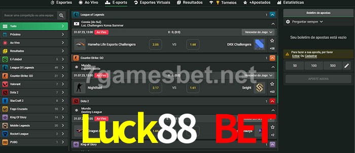 O Luck88 Bet oferece uma grande seleção de opções de apostas em e-sports com probabilidades competitivas